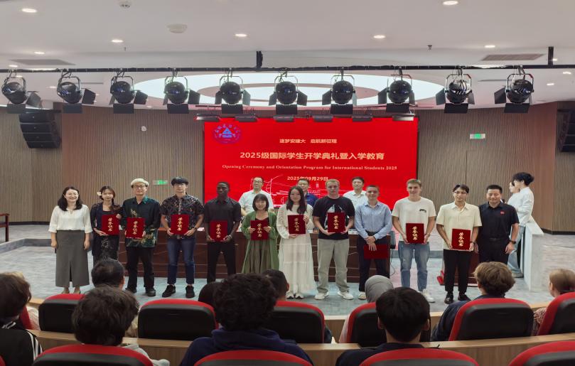 典礼特别设置了2024级国际学生表彰环节。 “跨文化之星奖” “学术卓越奖”“校园友谊大使奖”“文体贡献奖”四项荣誉的颁发,不仅是对优秀国际学子过去一年努力的高度肯定,也为新生们树立了身边的学习榜样。简朴而庄重的颁奖仪式将现场气氛推向高潮,象征着安建大国际学生教育中鼓励全面发展、弘扬积极向上的育人导向。